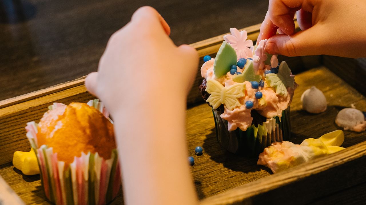 Gå i skolan på lovet? Javisst, men bara om man får lära sig mumsiga saker. Som till exempel att dekorera cupcakes. Och så klart får man äta upp det man har lärt sig. Smaskens!